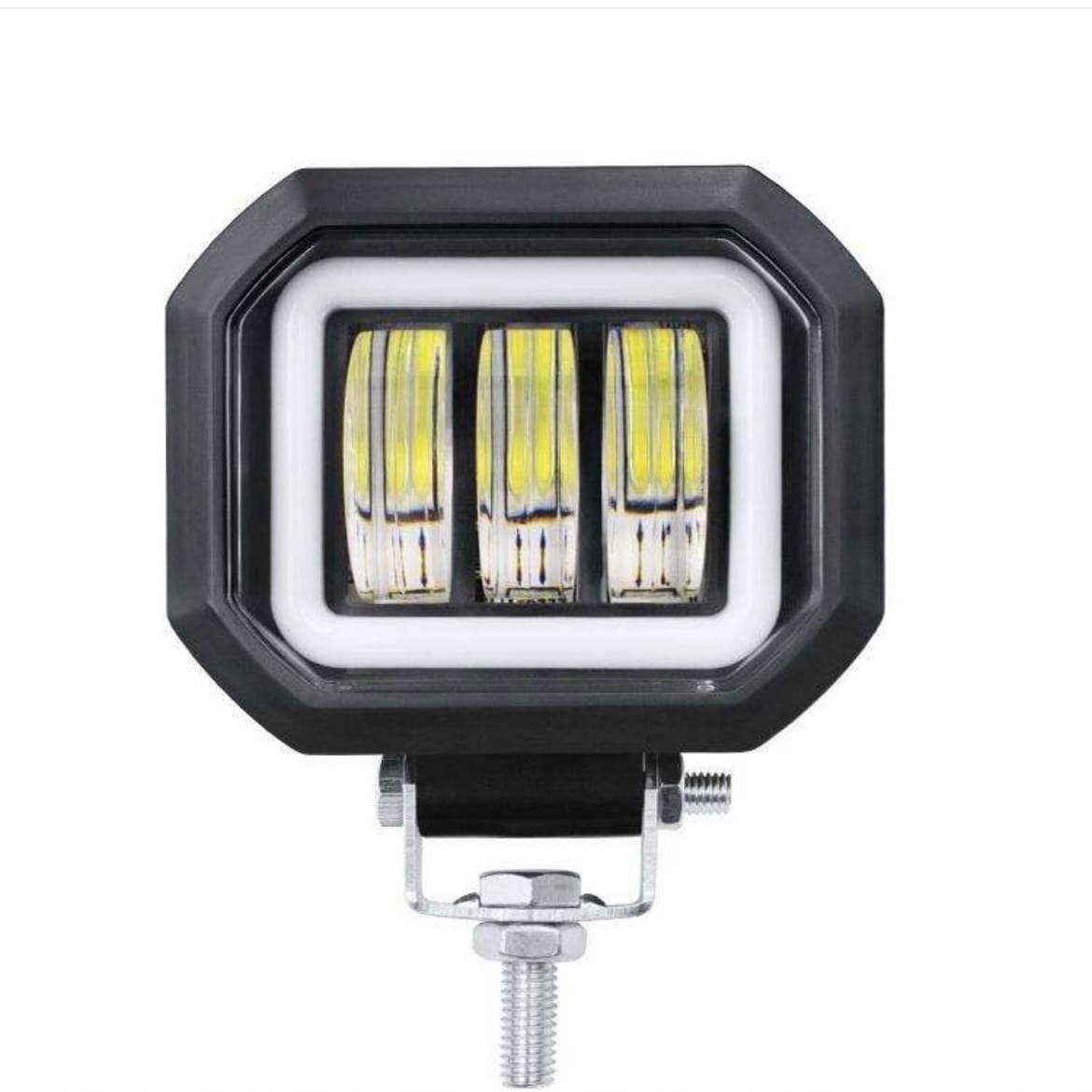 Светодиоды рабочего света WL 10X3 CREE 30W P – ПРИЗМА со светодиодной подсветкой на габарит “Ангельский глаз” 3 мощных диодов вых. мощностью 10 Ватт расположены под линзой, которая даёт верхнюю отсечку светового пятна. Подходит для ПТФ. Световой поток 3000 люмен. Вес 0,5 кг. Форма корпуса восьмигранная. Материал корпуса – литой алюминий, линзы – PC, крепления – нерж. сталь. Угол рассеивания 120° с отсечкой по вертикали