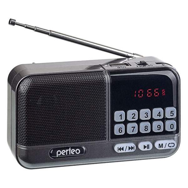 Оснащен приёмником FM (87,5 - 108 МГц, автопоиск). С помощью цифровых кнопок можно быстро задать нужную частоту радиостанции (1-0-6-2 -> 106.2) или выбрать станцию из числа сохранённых, введя её порядковый номер. LED-дисплей (отображает часы, номера mp3-треков и частоту радиостанции)