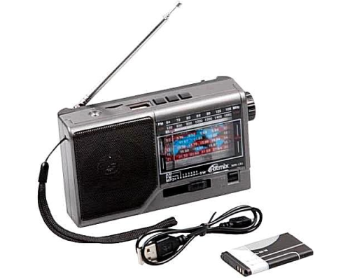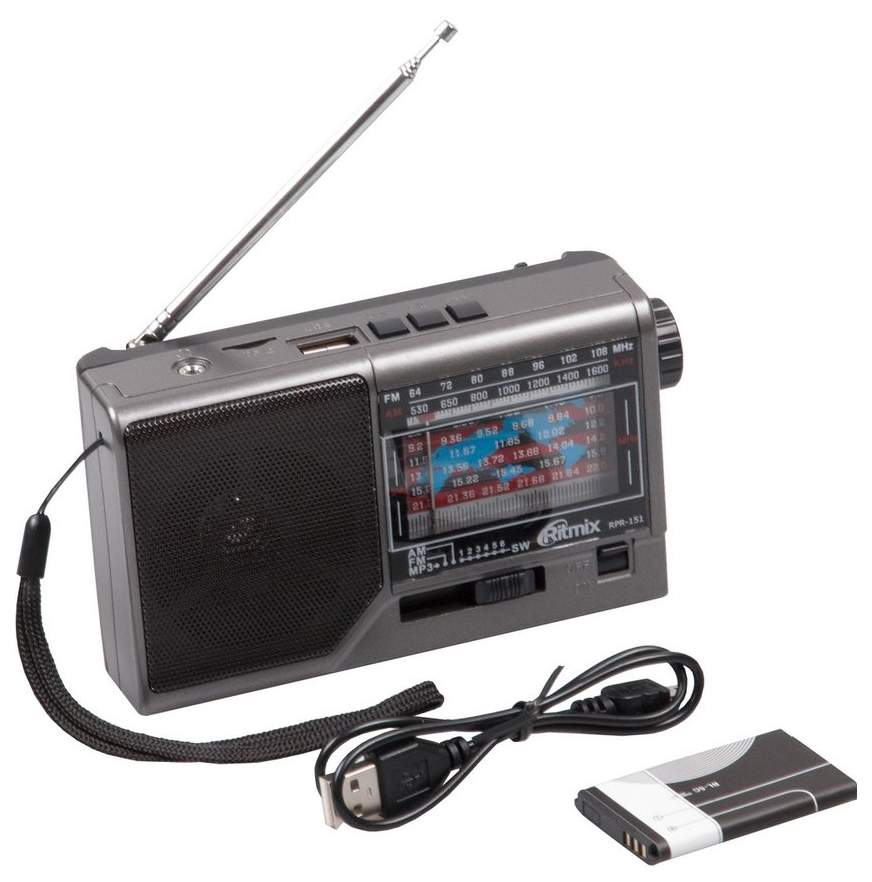 Радиоприемник RITMIX RPR-151 – карманный восьмидиапазонный радиоприёмник со встроенным аккумулятором и поддержкой MP3 с USB-флешек и MicroSD. RITMIX RPR-151 поместится в карман и может работать как от встроенного аккумулятора, так и от пальчиковых батареек — вы сможете взять его с собой куда угодно. Слушать можно не только радио — вы сможете вставить в него карту памяти или флешку с MP3-файлами. А если вам захочется остаться наедине с любимой музыкой — вы можете вставить наушники и слушать через них.