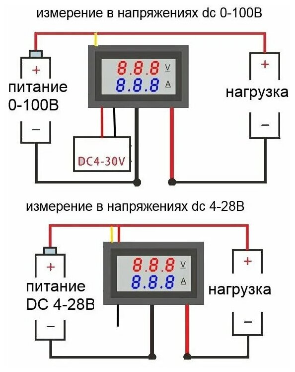 Цифровой DC вольтметр 0-100В, амперметр 10А