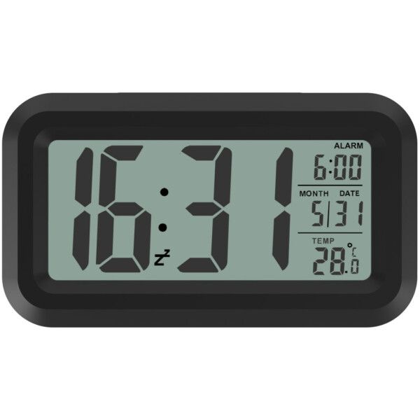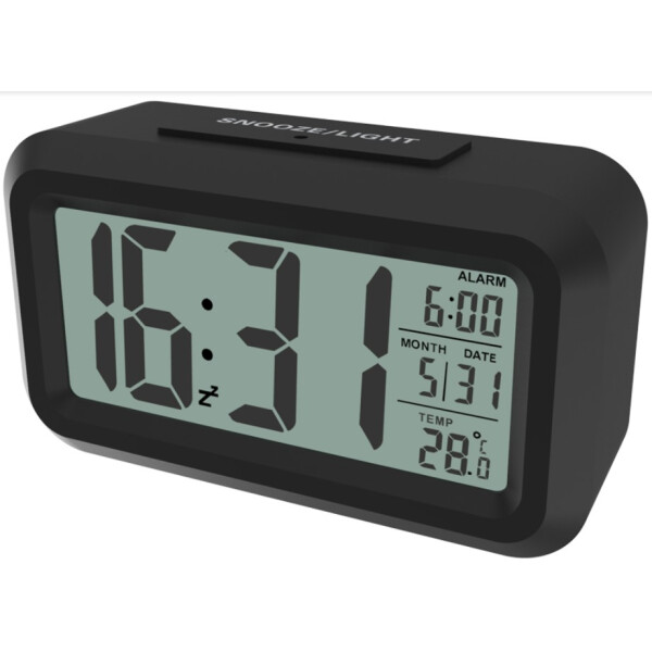 Часы-будильник с крупными чёткими цифрами высотой 4 см расположены в лаконичном корпусе. Комфортная подсветка экрана имеет два режима работы. Либо кратковременно включается (на 5 секунд) легким нажатием клавиши на верхней грани корпуса (это удобно ночью, если Вы поставили будильник рядом с кроватью, но любите спать в полной темноте, без каких-либо светящихся во время сна приборов). Либо уютная приглушенная подсветка может работать непрерывно, самостоятельно включаясь в темноте и выключаясь на свету по датчику освещенности. Режим включения подсветки легко устанавливается одним движением регулятора на обороте часов.